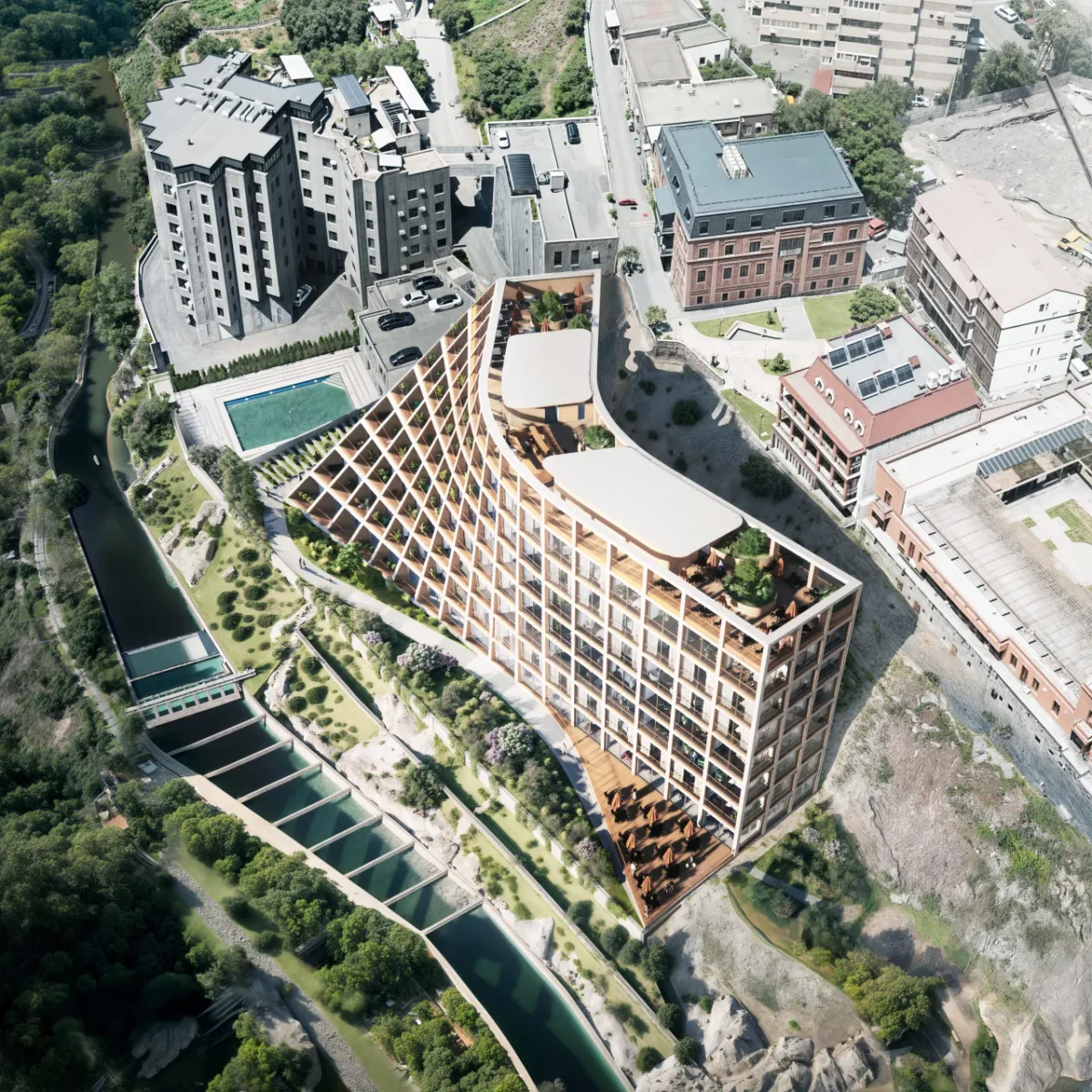 Kamertoon is a landmark development in the heart of Yerevan, located at 8 Sergei Parajanov street in Hrazdan Gorge. It redefines urban living through architecture, comfort, and culture – blending breathtaking views, smart and efficient engineering systems, and premium amenities such as The Atrium for cultural events, an open-air rooftop, fine dining, and many more experiences that bring the community together.